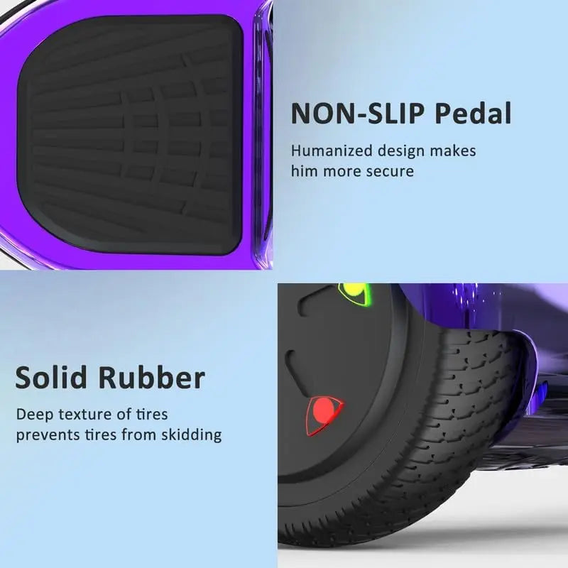 - Colorful LED Lights:Designed with vibrant LED lights, this hoverboard not only adds to the fun but also enhances visibility and safety during night rides.